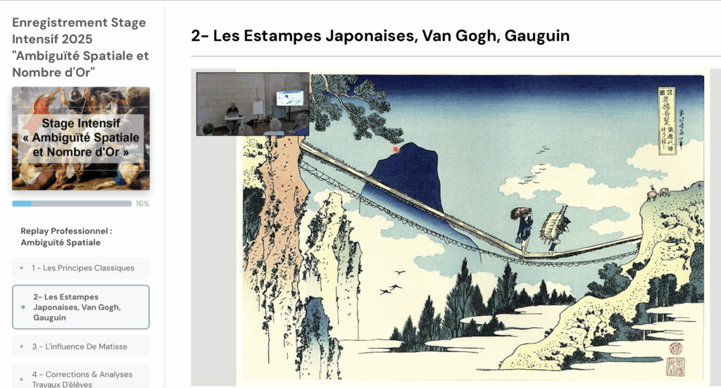 Début juillet 2025, Mauna Loa a assuré la captation vidéo et la diffusion live auprès de 150 participants d’un stage Intensif « Ambiguïté Spatiale et Nombre d’Or » organisé par Culture Peinture. Pendant une semaine, les stagiaires à distance ont pu suivre les enseignements diffusés en présentiel, poser des questions et bénéficier de corrections en temps réel sur leurs travaux.